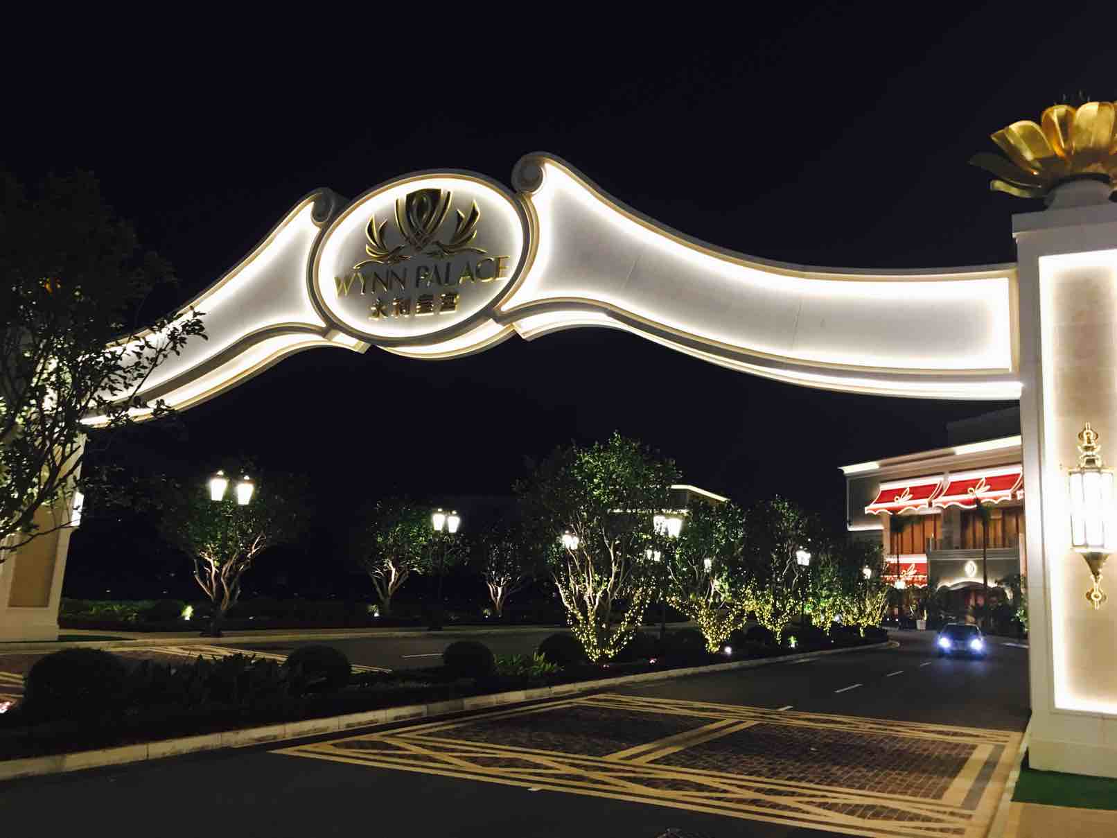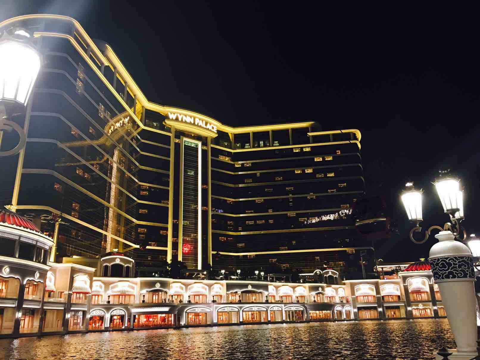 午夜,最热闹的是赌场,商业街里只有值班的保安来回巡逻着,我们在这里尽情的照啊、笑啊,我们的笑声感染了保安,在旁边开心的看着
