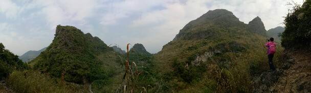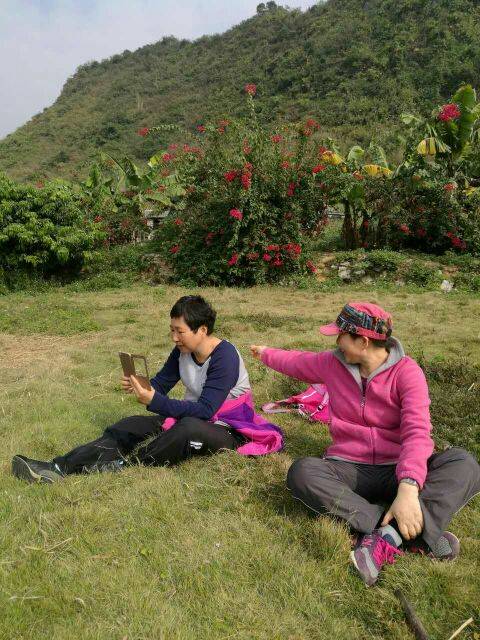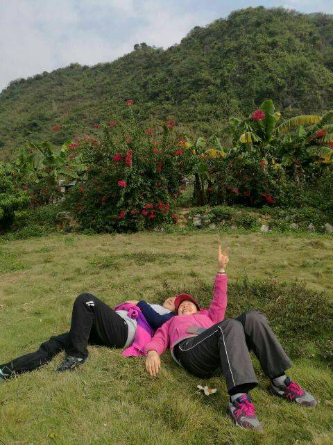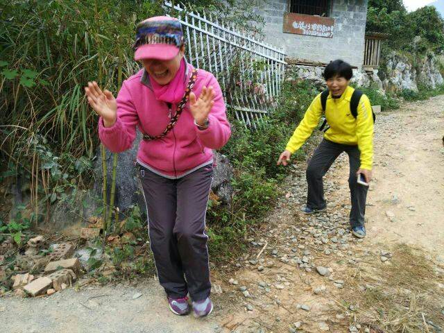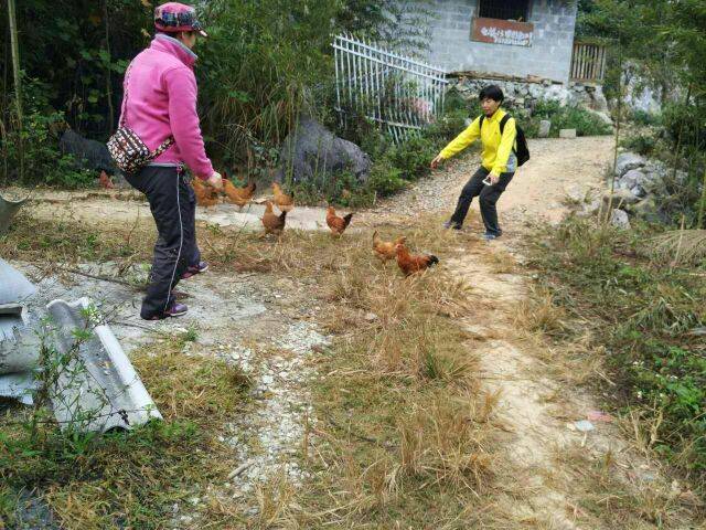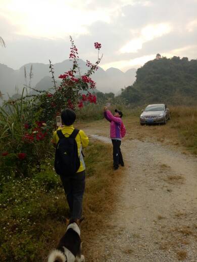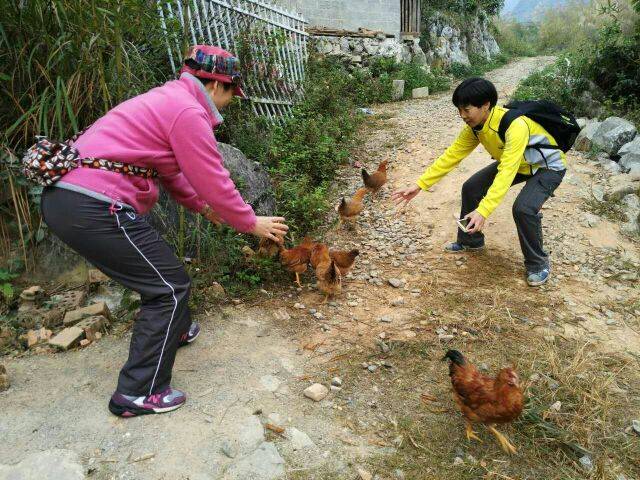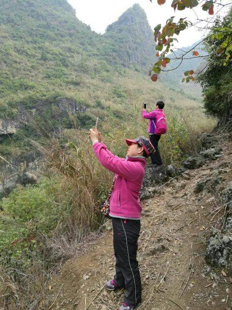 12月11日,天气晴好!今天本想着去吉屯爬山,在村口等车的时候有一群爬山的候鸟人也在等车,每人手里拄着一根手杖(树棍做的)。于是询问一位阿姨去哪爬山,她非常热情,说去百鸟岩爬山。在长寿村口坐公交车,2元钱,到拉类村下车,我们如果要去,跟着他们就行!