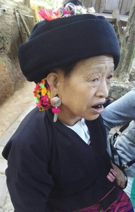 那个大妈的耳朵都坠成那样了,牙怎么是黑的呢?看着挺不舒服的!