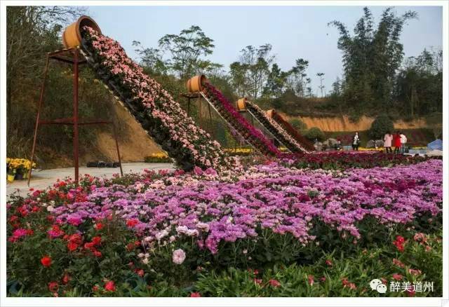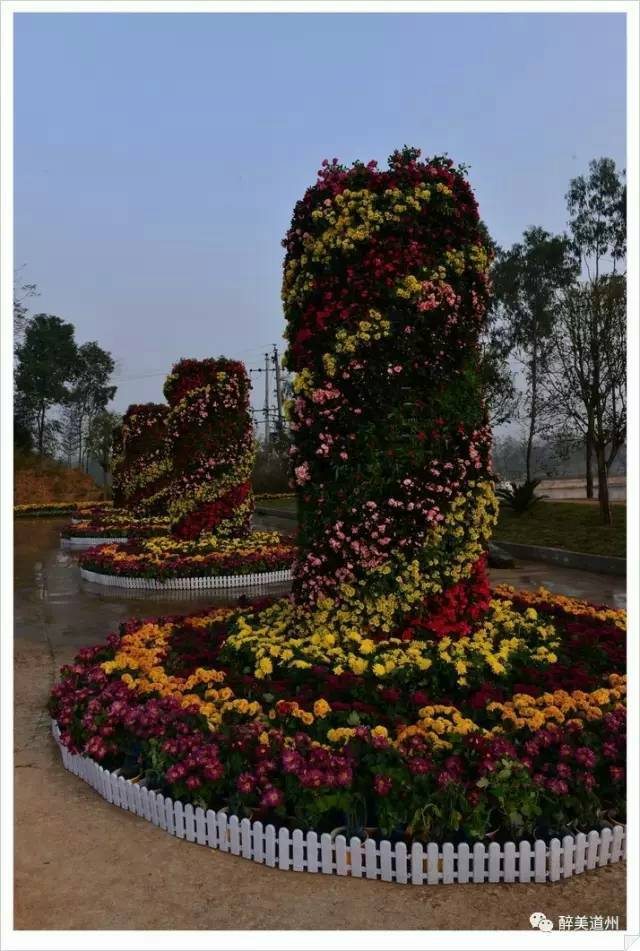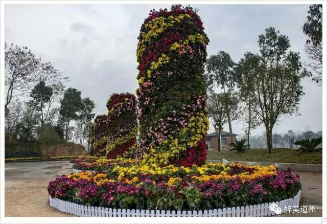 各种盛开的鲜花已成了花球、花柱、花墙和花的瀑布……