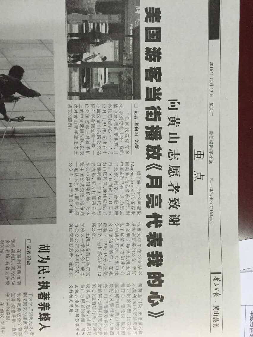 不仅如此,他并没有停下旅行的脚步;他找的宾馆在一家卡拉OK对面,一次聊天,他说他在卡拉OK唱《月亮代表我的心》,老板不要他支付钱!他说在黄山遇见的都是好人!