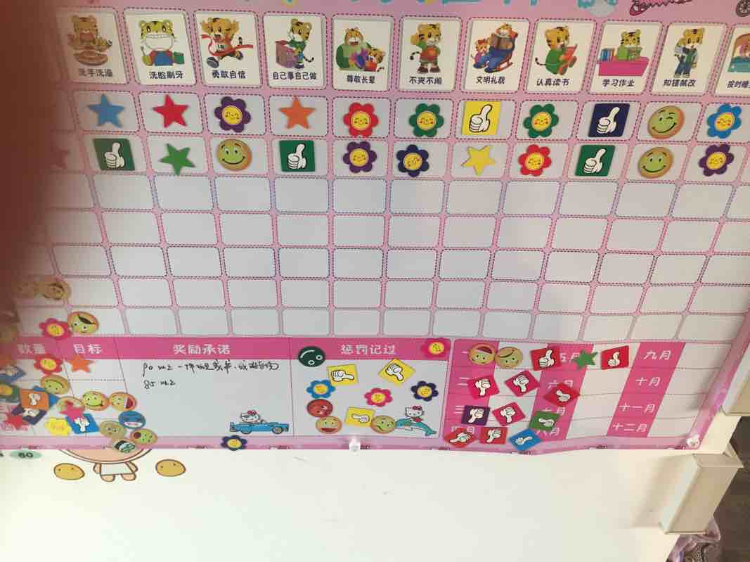 不生气,不抱怨!孩子需要鼓励,认同,你越是脾气差对他他越叛逆,试着心平气和,她做错题或事情的时候要帮助他而不是说教,你会发现孩子其实很聪明的。我家还有鼓励机制不知道适不适用我发个图