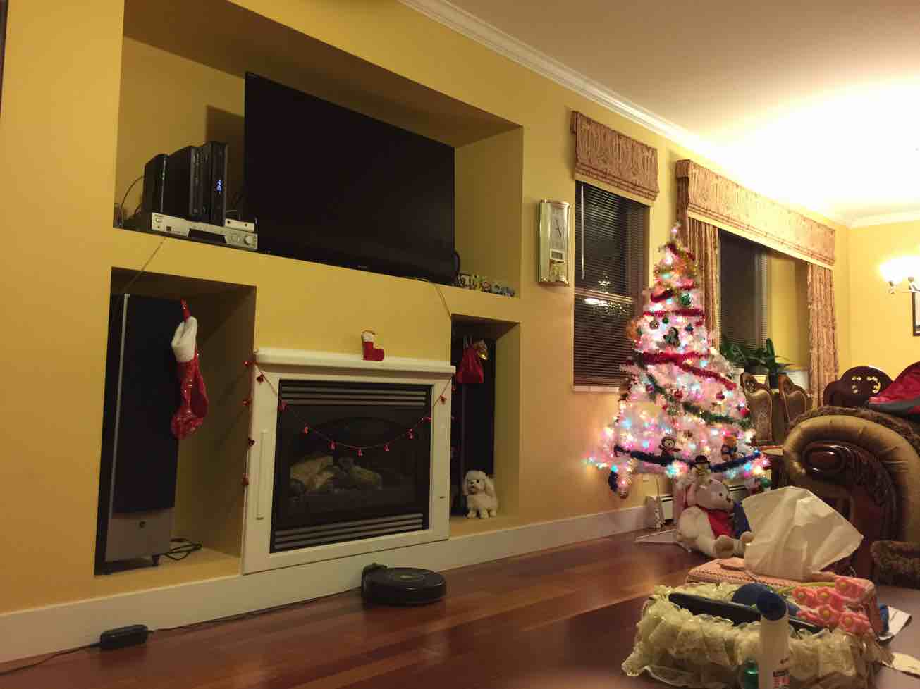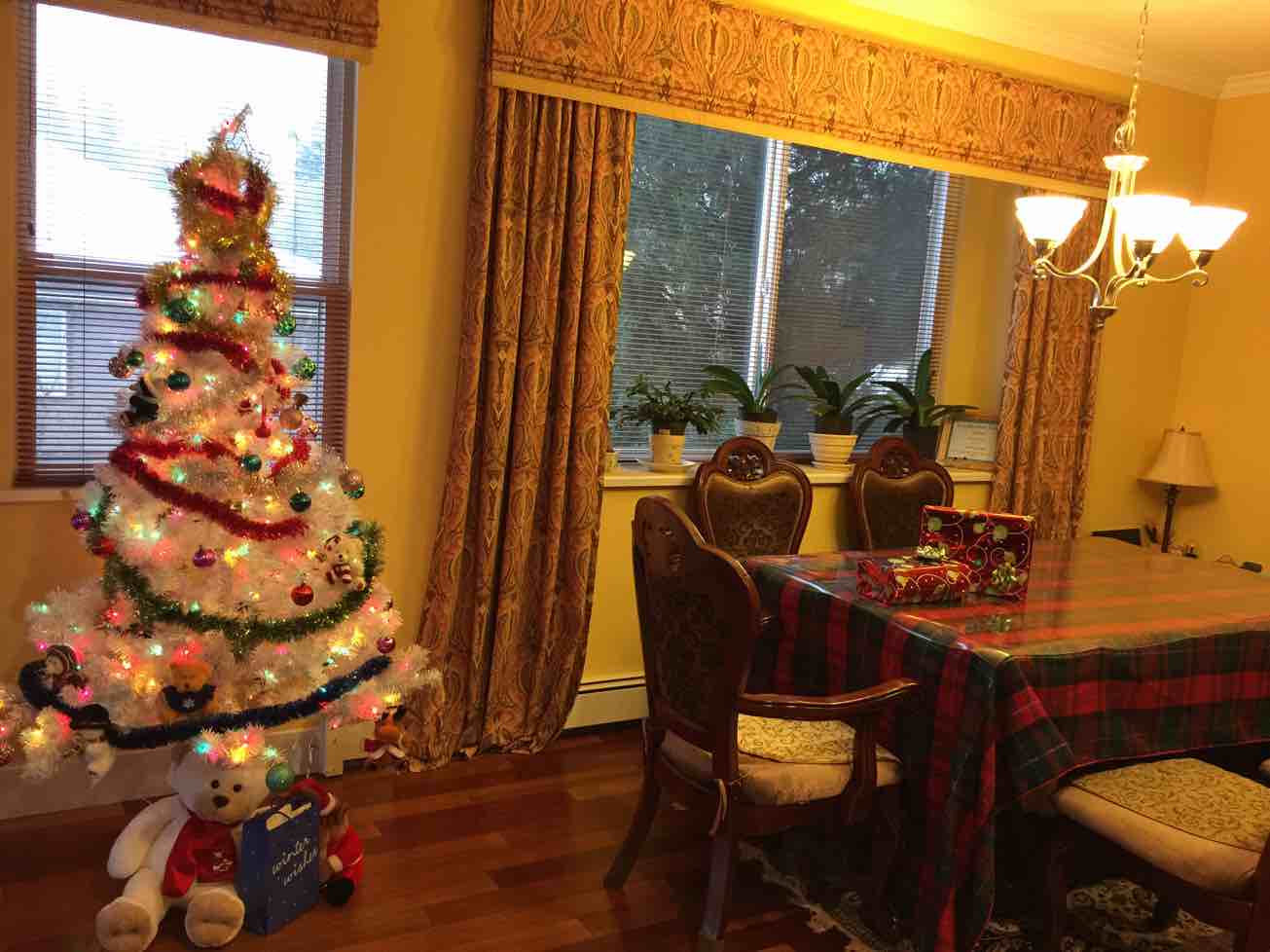 今天真正体验到了什么叫做精疲力尽,总算把车库门前的雪除净,以免结冰。因为大雪突降,所有的雪盐雪铲全部脱销,订购的电动雪铲还没送到,只能拼了自己的力气了。从屋外的白雪皑皑回到室内,顿时暖融融的。今年还真是个白色的圣诞。