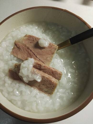 今晚,发现全家都在吃肉,老公在吃鸡肉,女儿在吃猪肉,还有我一人在家煮了白粥过糟肉*^_^*