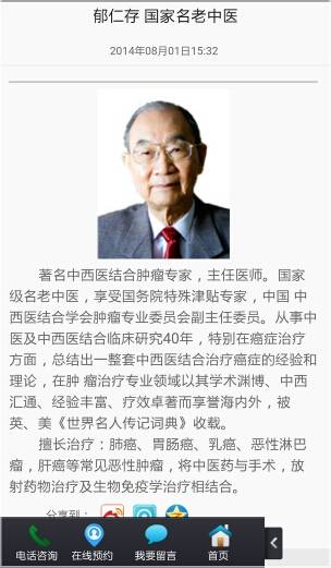 生病后在一位朋友那儿听说了郁仁存教授的名字...这位朋友的妈妈15年前得了肝ai,当时经西医治疗后看的郁教授结合中医调理,现在朋友的妈妈已经70多岁了身体依旧很硬朗。个人觉得中医博大精深,不能单方面评价一个中医师的好与坏,每个中医都有自己擅长的一方面,病人和医生也是要有缘份的。