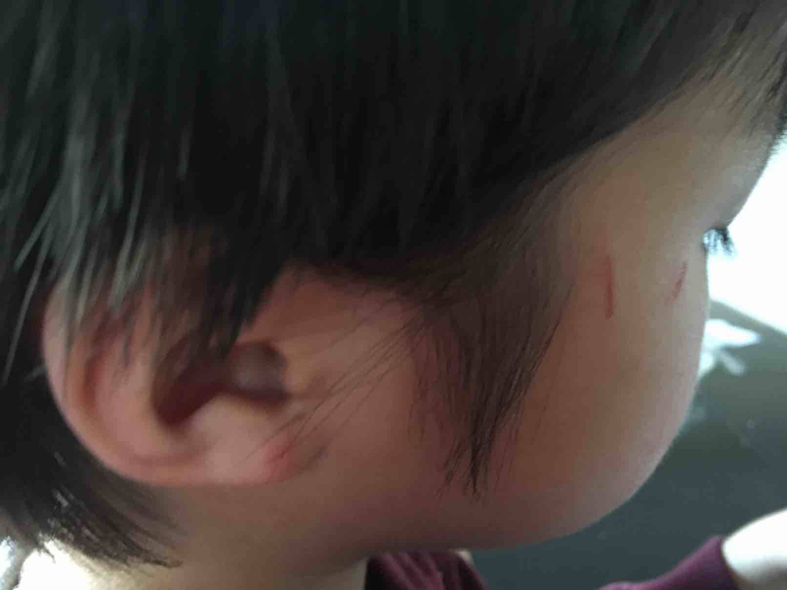 最近几天儿子都不太开心,每天放学回来喂饭也不吃了,就一直哭一直闹,也不知道是怎么回事,昨天回来又被别的小朋友抓伤了脸和耳朵,老师打来电话说是因为他急着要去上厕所,把正在用厕所的小朋友推了一下,然后出来之后就被他抓了几下,他也没哭没闹,回来我看到脸上的伤痕累累