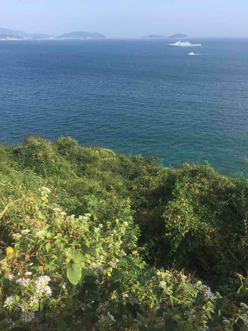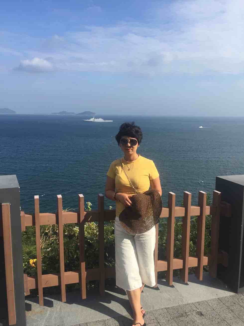 蓝蓝的天空,蓝蓝的大海,微微的清风好惬意。眼前就是一副美丽的图。