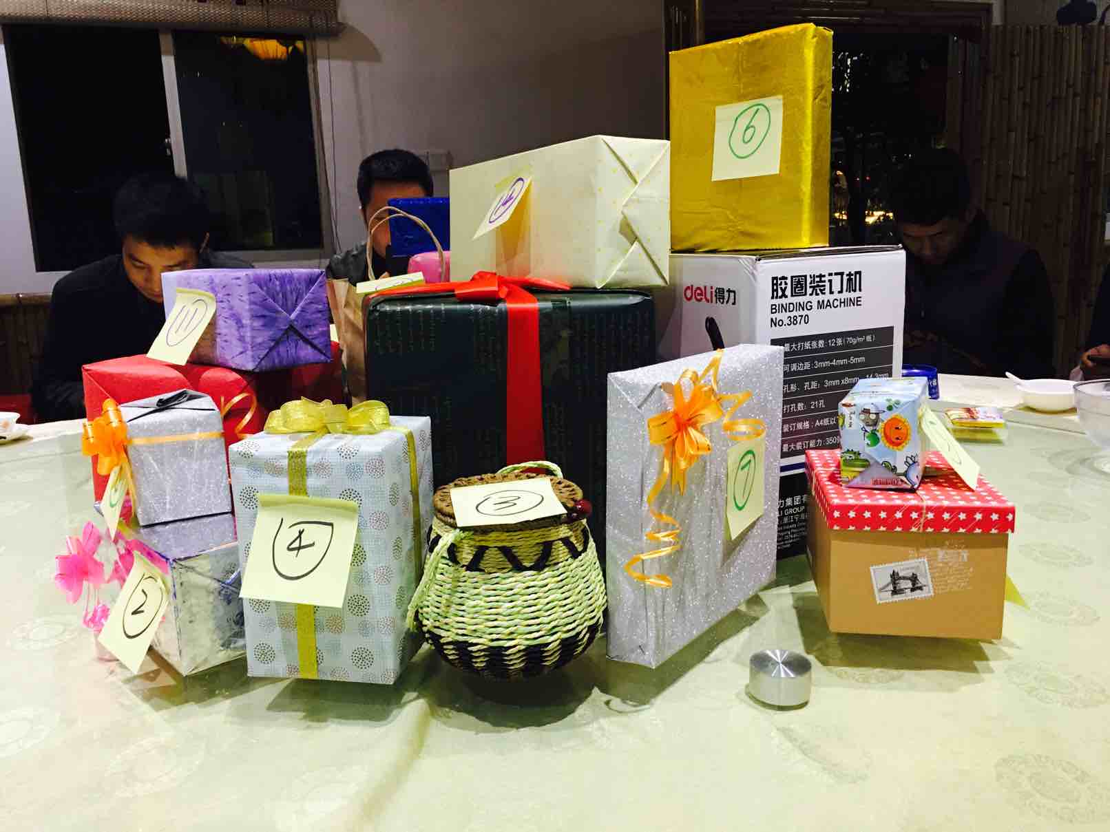 年关将至,酒店管理层的聚餐,互换礼物,收到的礼物是景观杯子,是总厨的礼物,我的礼物养生壶被工程总监抽中,大家开心的笑啊,今年一年的辛苦努力有结果了,完成了预算,年终奖可以发两薪,开开心心走进2017年了
