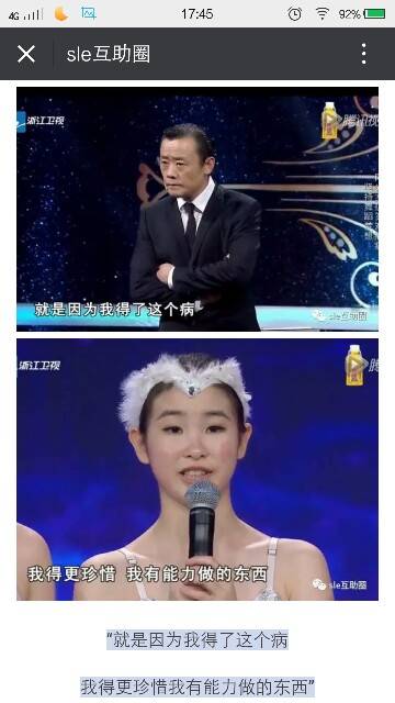 我看过这一期,这个女孩好像14岁吧,有sle。我当时刚确诊在住院期间,真的感动地哭了。这个节目是 壹周立波秀