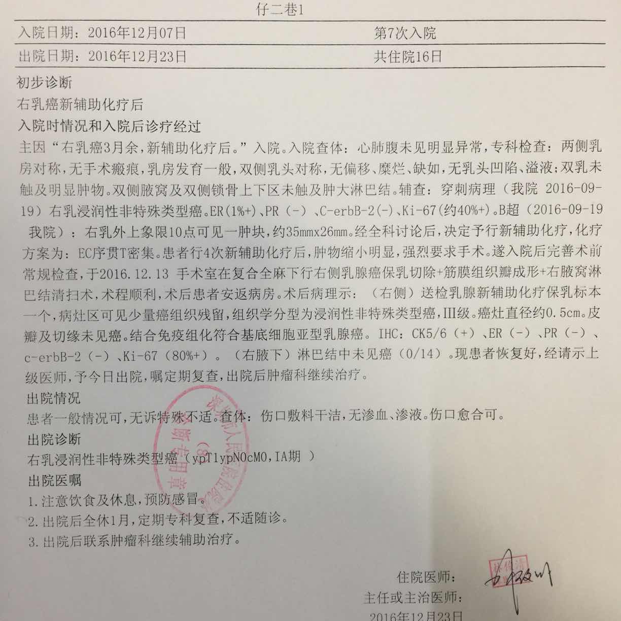 好的方面:临床分期是早期,淋巴没有转移。不好的方面:ki-67高,化疗一定要做!