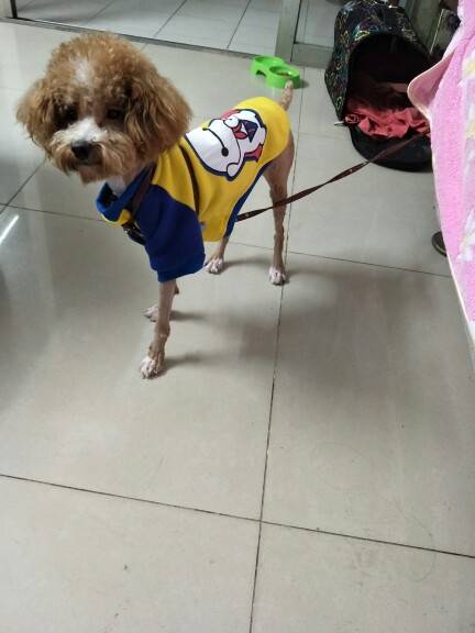 唉呀,大冬天的,居然跟它剃光了,还好买了衣服,不然冷了狗狗了!!