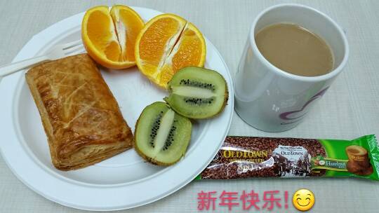 早餐:香酥咖喱包 水果 咖啡...好久没喝咖啡了☕难抵老街榛果味白咖啡的诱惑😍喝了一小袋的三分之一...😋