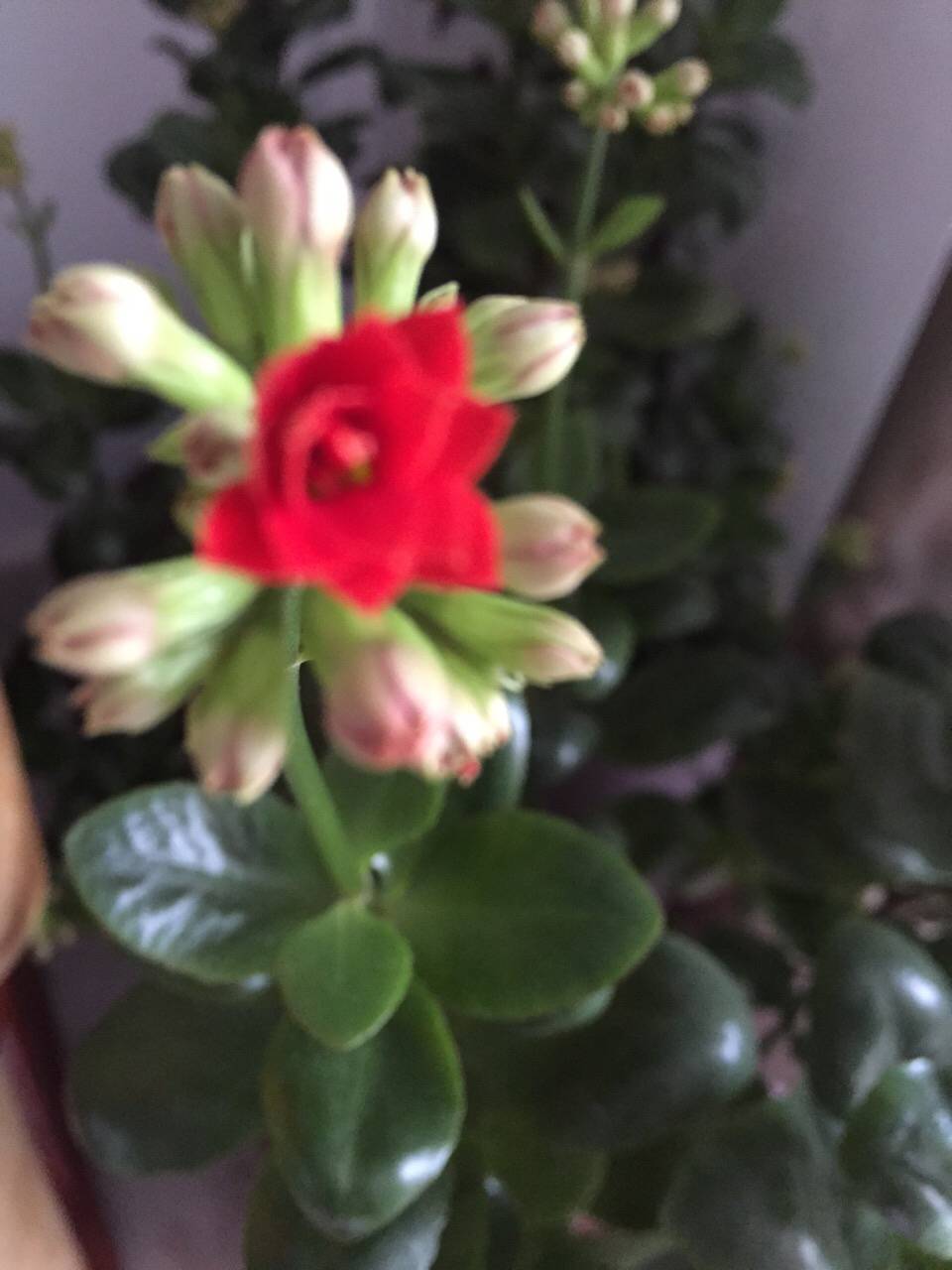 朋友说这个叫长寿花、打骨朵20多天了、今天开出了一朵小红花。2017第一天啊、分明就是好兆头、因为开
