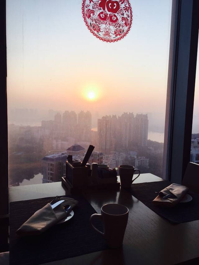 这边没有雾霾,早晨初升的太阳,我的技术不好,拍的不清晰。