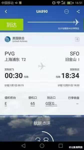【这个航班火了:2017元旦起飞 降落却是2016年】北京时间2017年1月1日00:30分,美联航UA890航班从上海出发,飞往旧金山,最后抵达目的地居然是2016年12月31日18:34分。当然,这个是时差原因,网友可是乐开了花:“一下子可以过2个新年了”“谁说金钱买不到时间的”……[呲牙][呲牙]