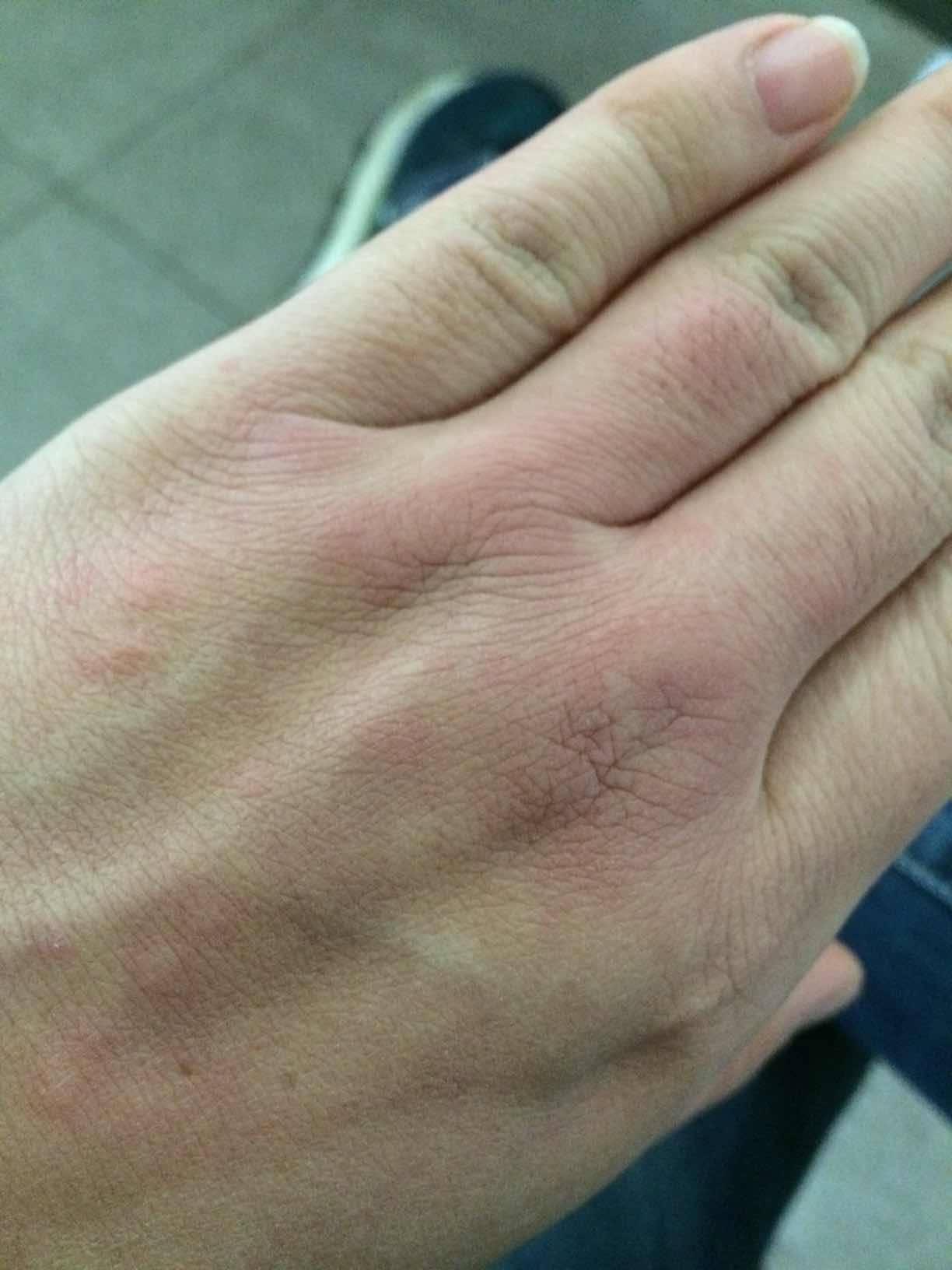 现在再也牛B不起来了,后背手背脚背后脑勺都生满了荨麻疹,奇痒无比,挠啊!越挠越痒~医生说不能挠,挠破了更加惨。荨麻疹是个什么东西请百度,症状很明显。