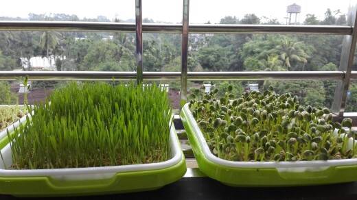 第一张图矮的是豌豆苗,已经剪过一次了,不知道还能不能长起来?