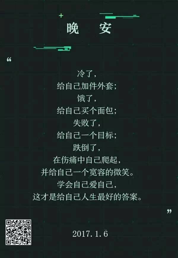 每天睡觉前给自己说句晚安,希望每天醒来,都是不一样的人生色彩。