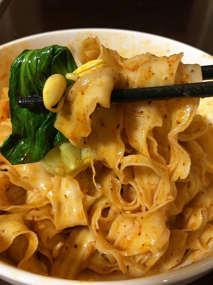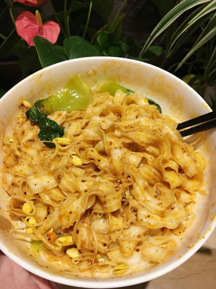 三分钟就能做好的油泼面,吃一碗能管三天不饿:面条煮熟捞出来,配菜焯一下跟面条放一起,在碗中间加葱花、蒜末、盐、辣椒粉、生抽、辣椒油、一点点醋,把油烧热泼在调料、面条上,拌好,完事✌