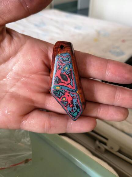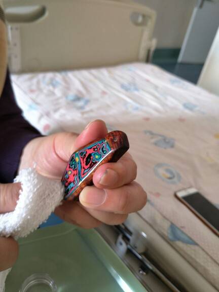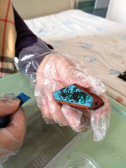 住院姐姐来陪我。我领着姐姐玩红木漆艺吊坠。姐姐在我的指导下,完成了最后的打磨抛光工序。做手工打发时间,投入喜欢的事当中,心情愉快。姐姐看到打磨过程中图案的变化,感觉很奇妙。这种自然的纹路和肌理效果,漆艺最能体现。其实这只是漆艺中最最简单的。真正漆艺大师的作品,他们倾注的心血和时间,真的体现出手工艺术品价值。
