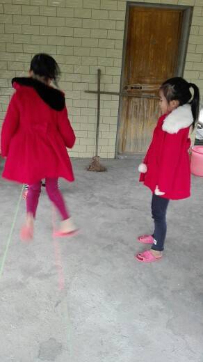 她们玩的好开心啊!想起小时候玩跳皮筋了!