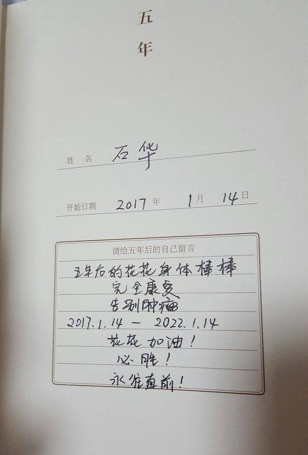 一定会写满的,一本五年日记,十本五年日记,好多好多本五年日记,好好写,我们要跟随你的日记一起打败病魔直到胜利来临