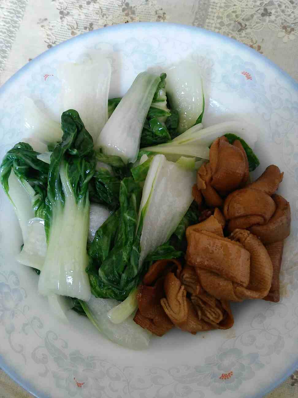 荤素都有了,青菜的颜色真好看,不错不错,现在的我们都越来越能干了