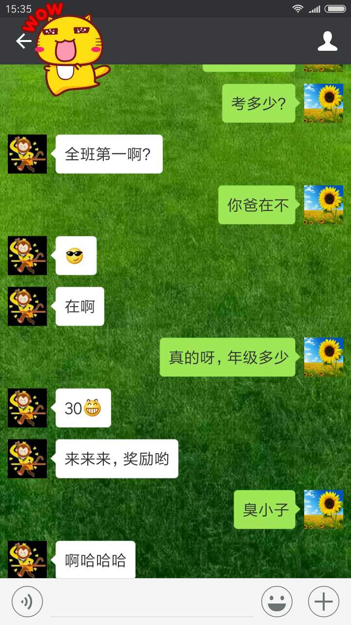 刚刚得到消息,高二的儿子考个好成绩,开心!臭小子,跟我要奖励,行吧!满足你,这回你就狮子大开口吧!宝贝,其实真想领你出国转一圈。还有,要再接再励,千不能骄傲自满,和老妈一起加油!