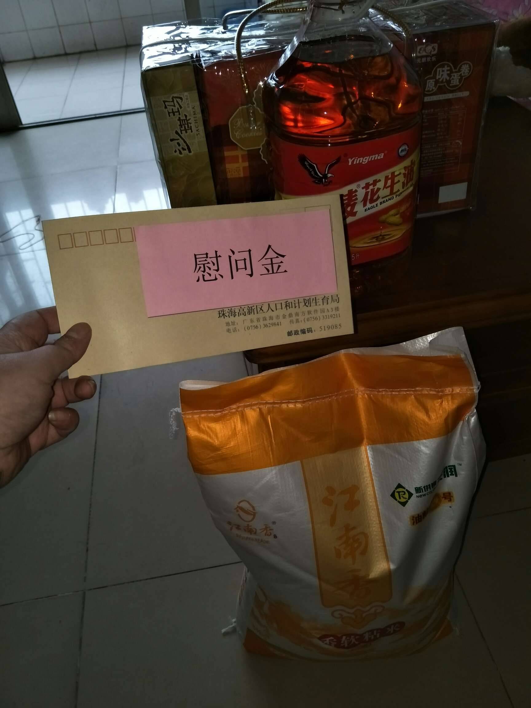 嘿嘿,刚蹲厕所中,有人喊门,出来开了门,看看,谁知道,又是送福利慰问来了,一包米,一罐油,一袋礼盒装的饼干,还有慰问金200,是以我患有狼疮,长期需要治疗来慰问的,今年太好了,过节福利就是如此😆😆