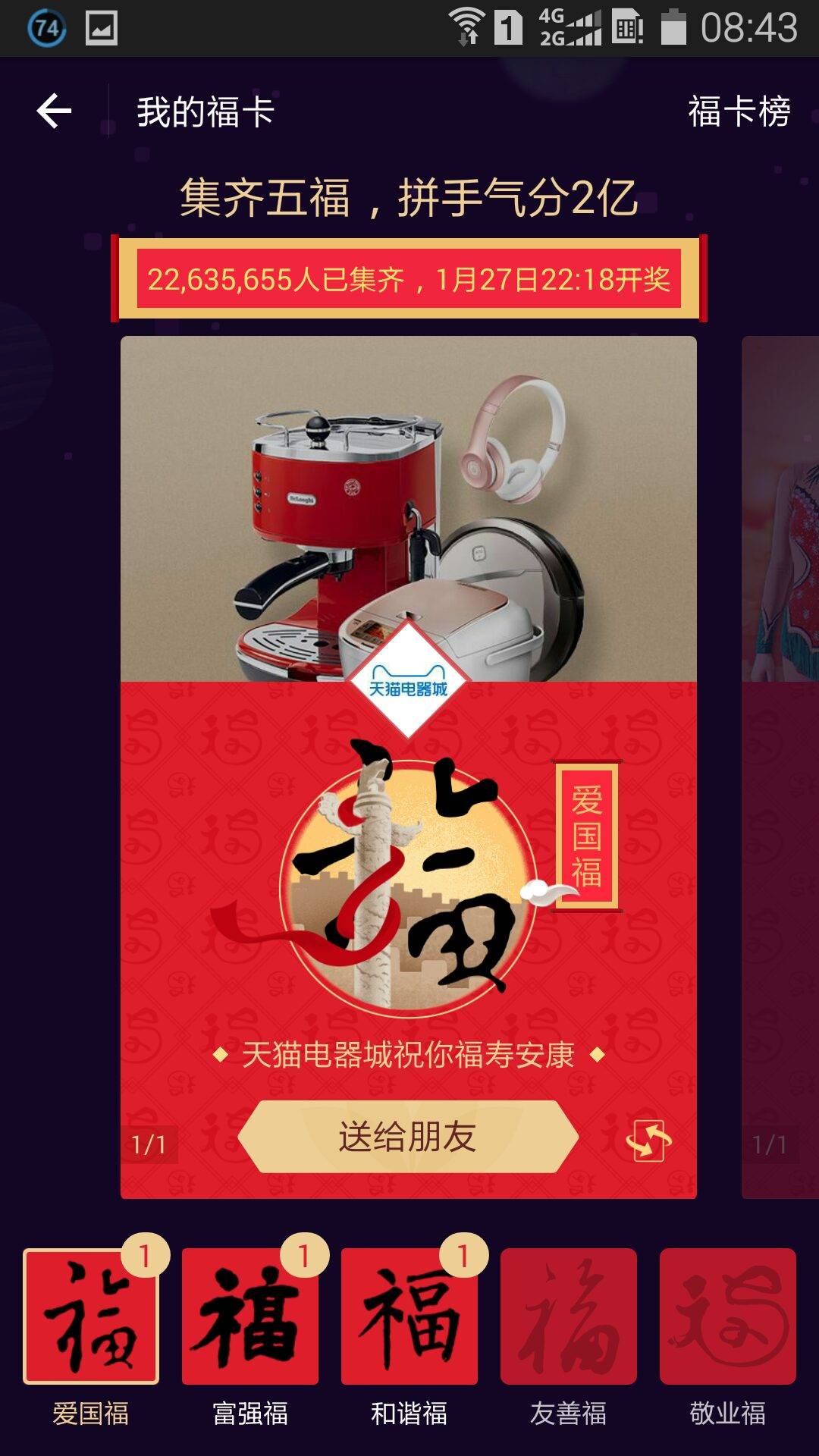 姐妹们有友善福和敬业福可以送吗?