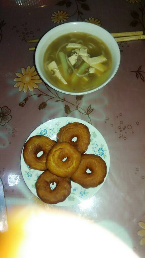 炸油饼,粉汤,好香