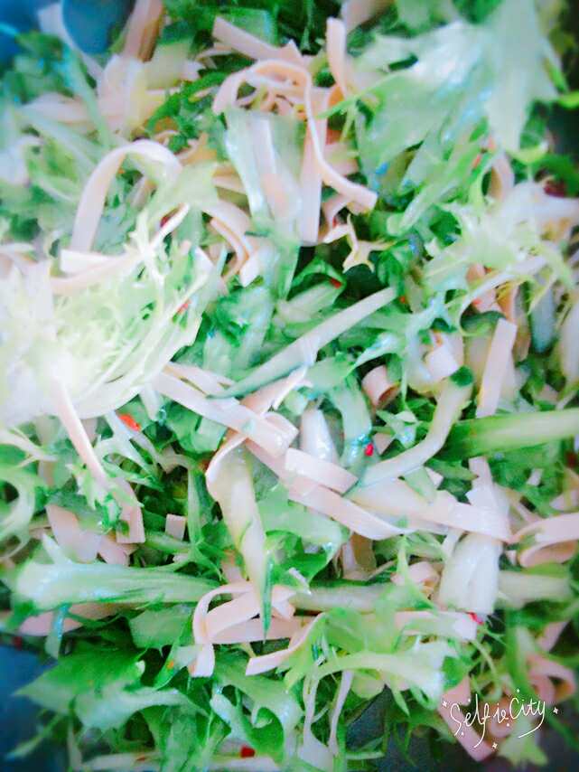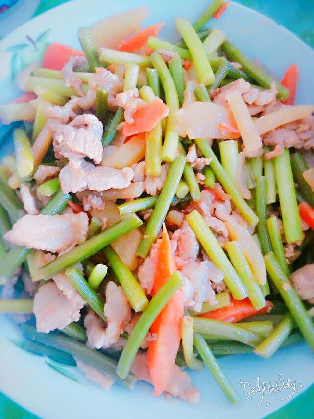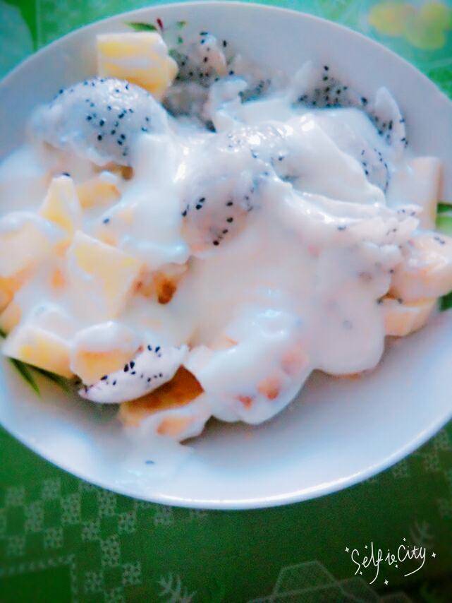 😀菜:图一(蒜苔肉胡萝卜) 图二凉拌菜(苦菊黄瓜干豆腐 吃草) 图三水果酸奶沙拉(苹果香蕉火龙果酸奶自制)
