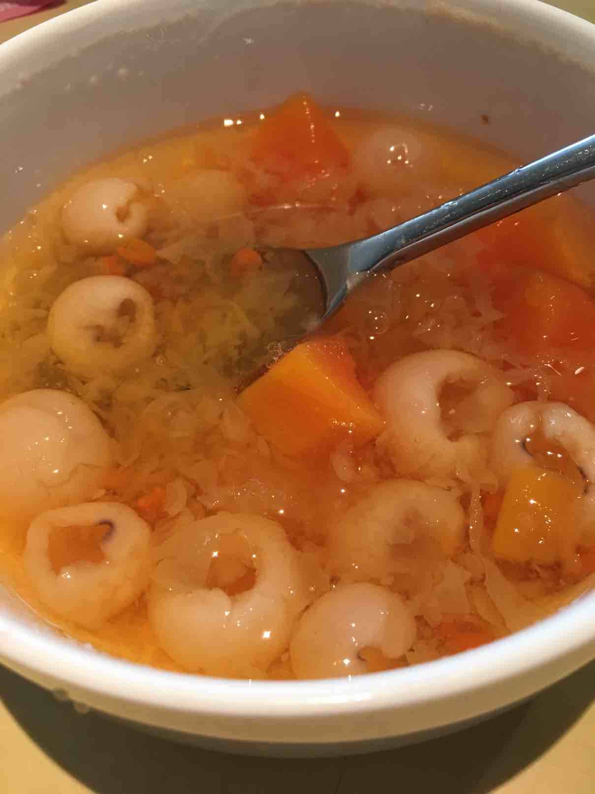 早晨用昨天在香港楼上买的雪耳和桂圆正好还有上周采摘的木瓜熬了汤,没有放冰糖,因为有桂圆,还是有甜甜的味道