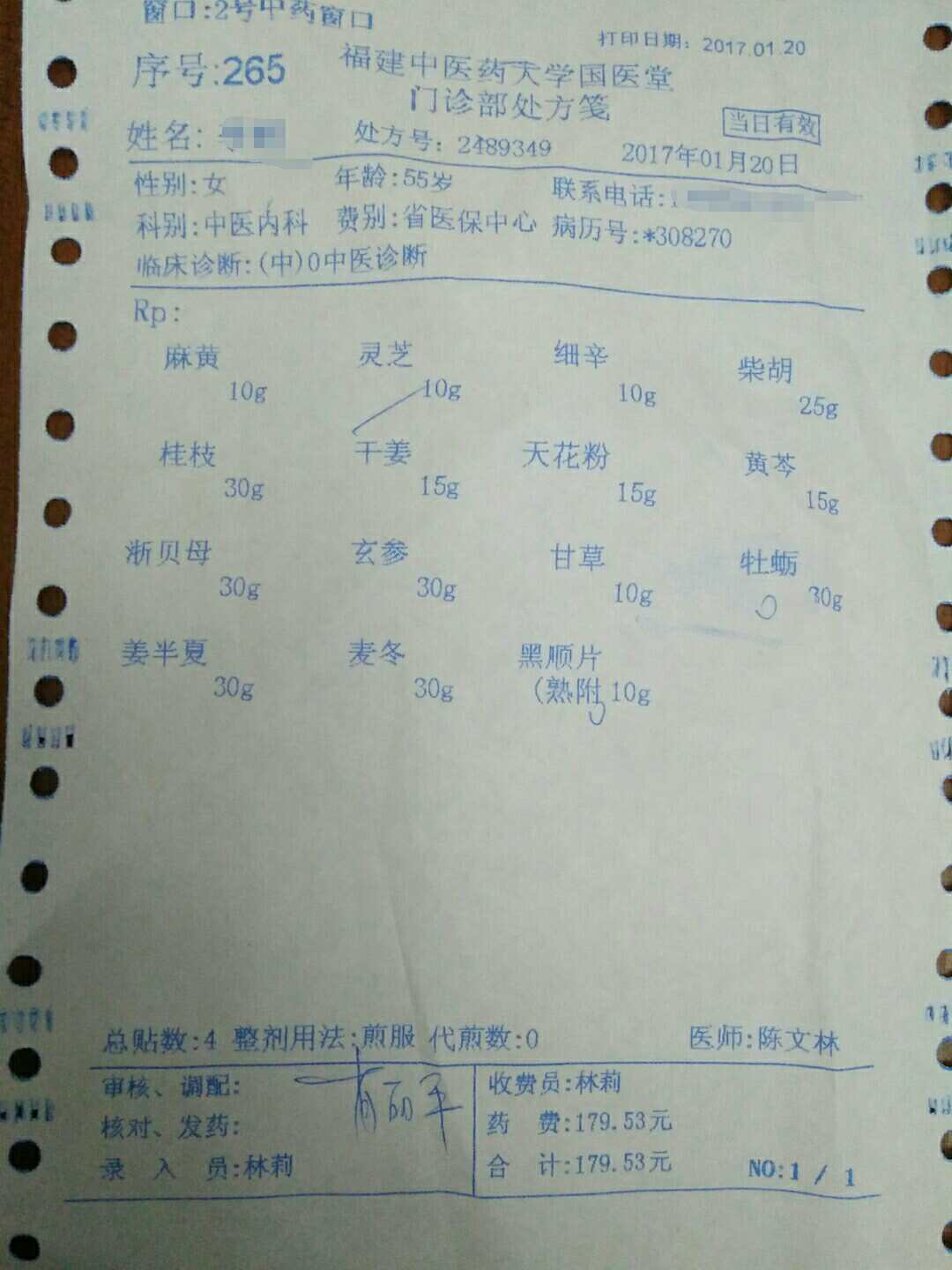 本来想备足一个月的中药,正月元宵节过后再就医,被医生告知医保卡最多只能开14天的药,结果是开了10天的水剂,4天的颗粒剂,因颗粒剂缺一味药没拿,最后只拿了10天的中药。