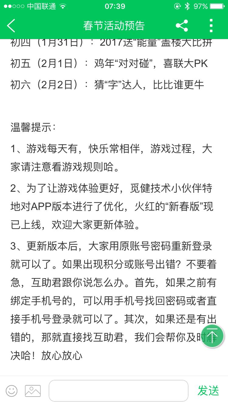 翻看活动规则,看到最后一页。互助君认真的给大家写了遇到问题的处理方法,忽然就泪奔了。心里好暖。在千家万户都沉浸在过年的喜悦中时,有一群姐妹在这里互相取暖。有另一群人在背后默默的为这些姐妹提供着服务。突然有种多了一个家的感觉。谢谢觅见,谢谢姐妹们,新年快乐。