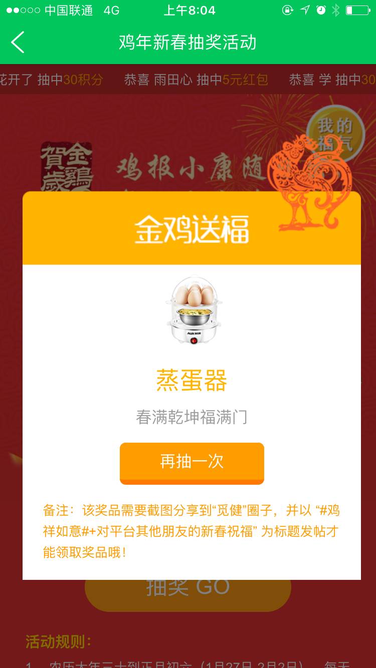 ps:猴年的最后一天总算弥补了这一年没有中奖的空白,再次感谢觅健!