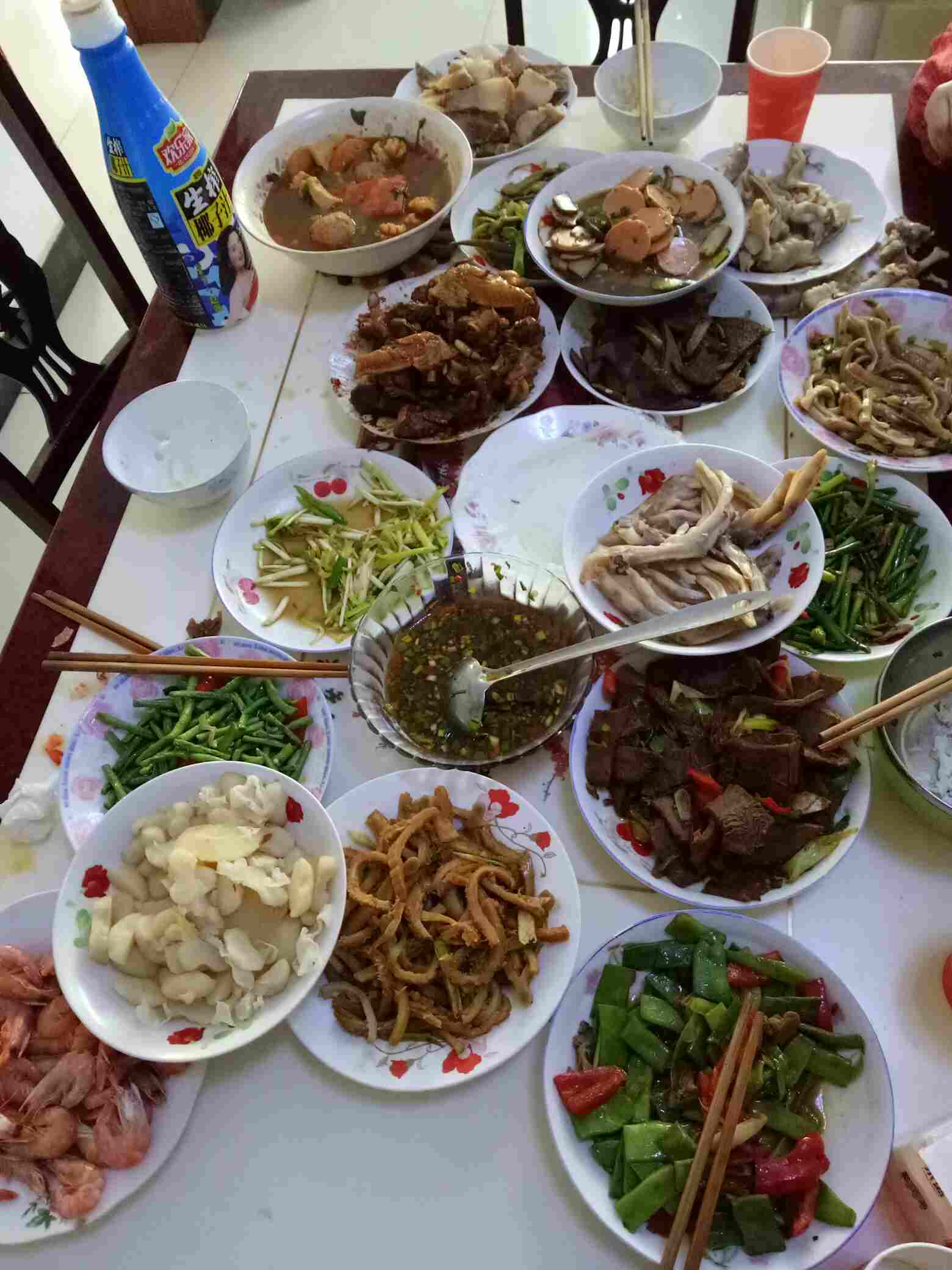 真丰盛 我们家就两个菜 妈妈感冒了 不爱弄 我贴对联来着