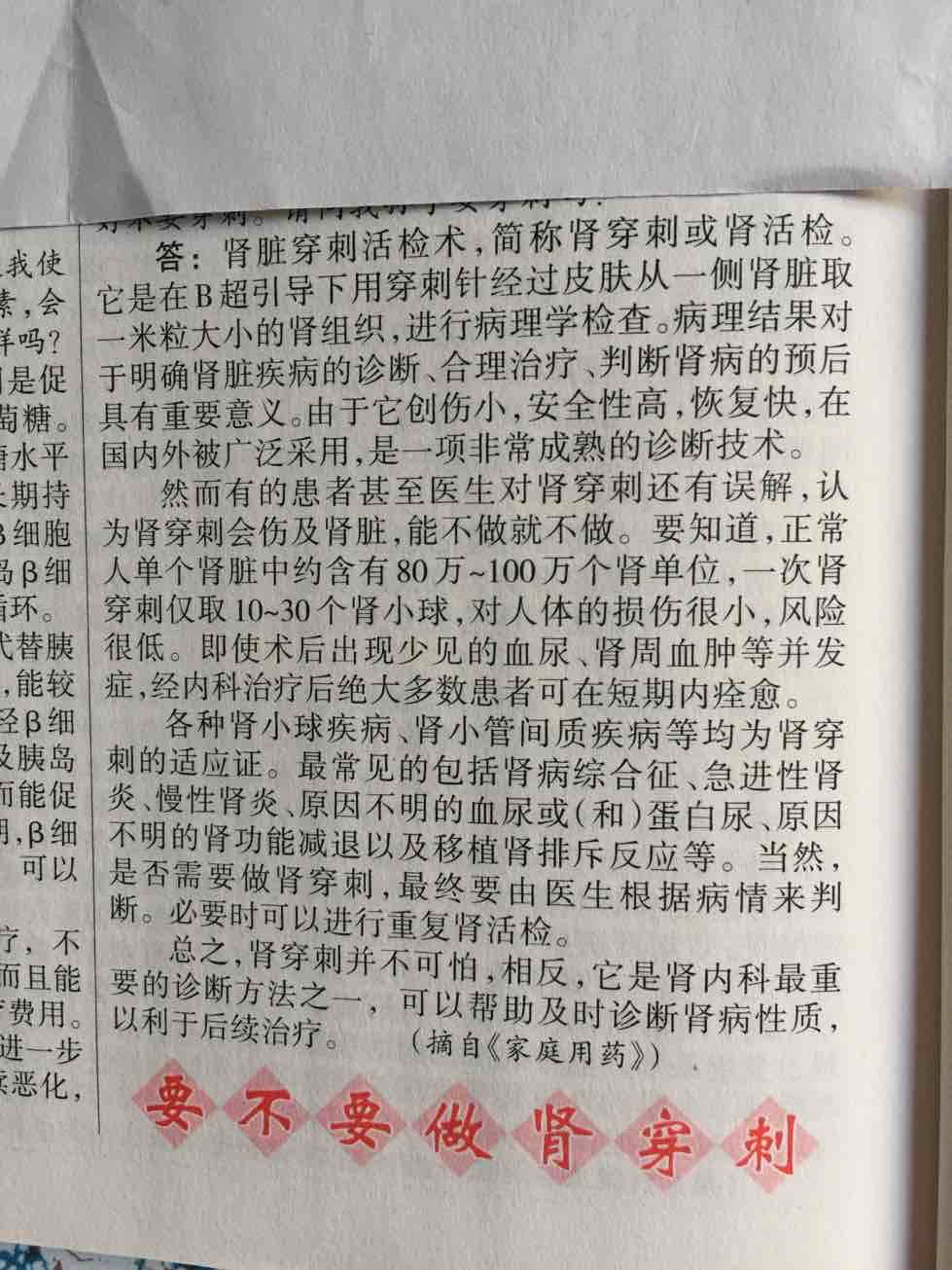 我年前住院时医生建议我肾穿,但我害怕没敢做