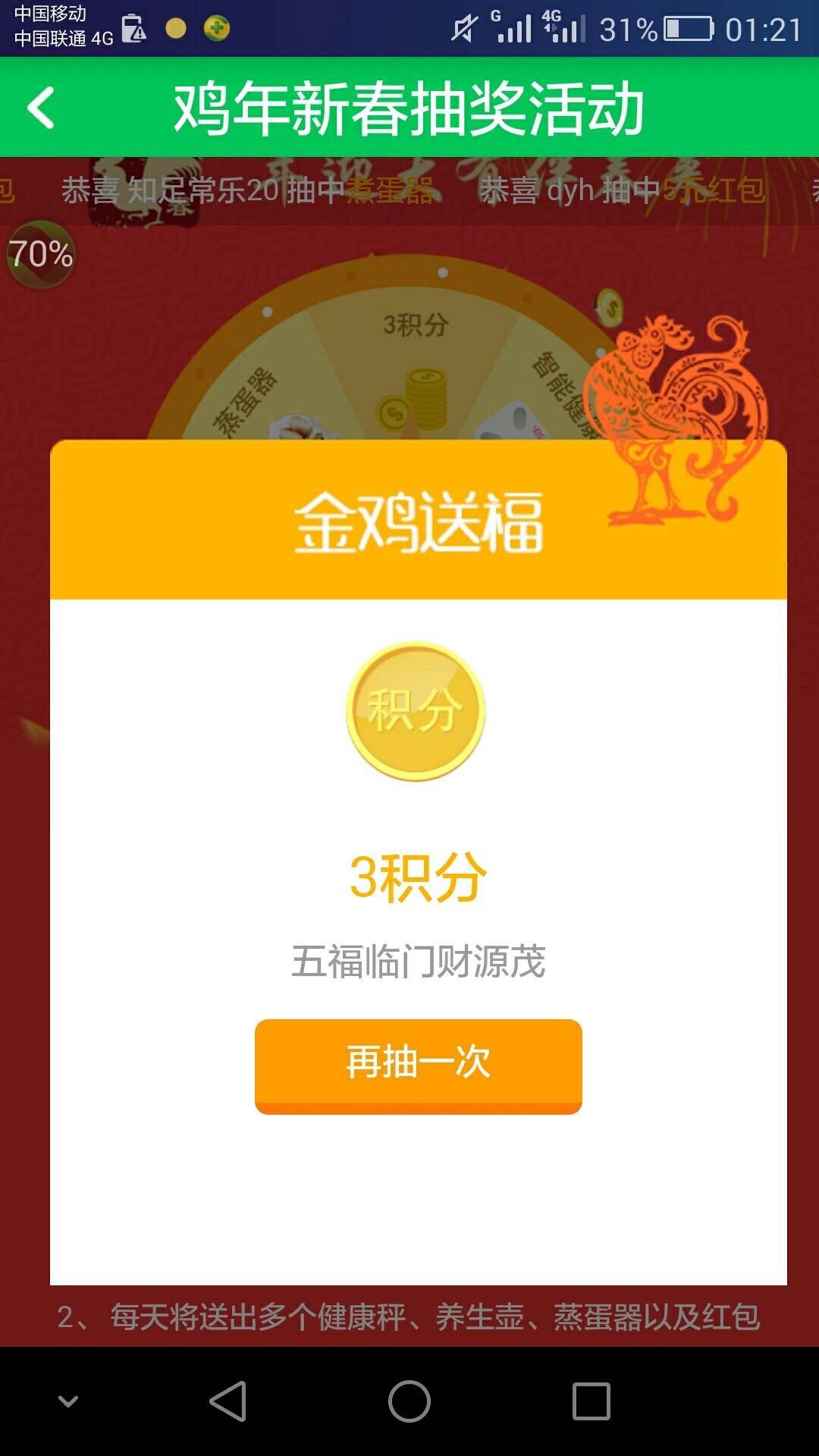 恭喜,我也是抽到3积分!