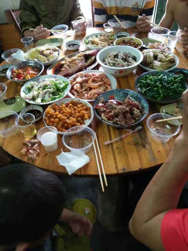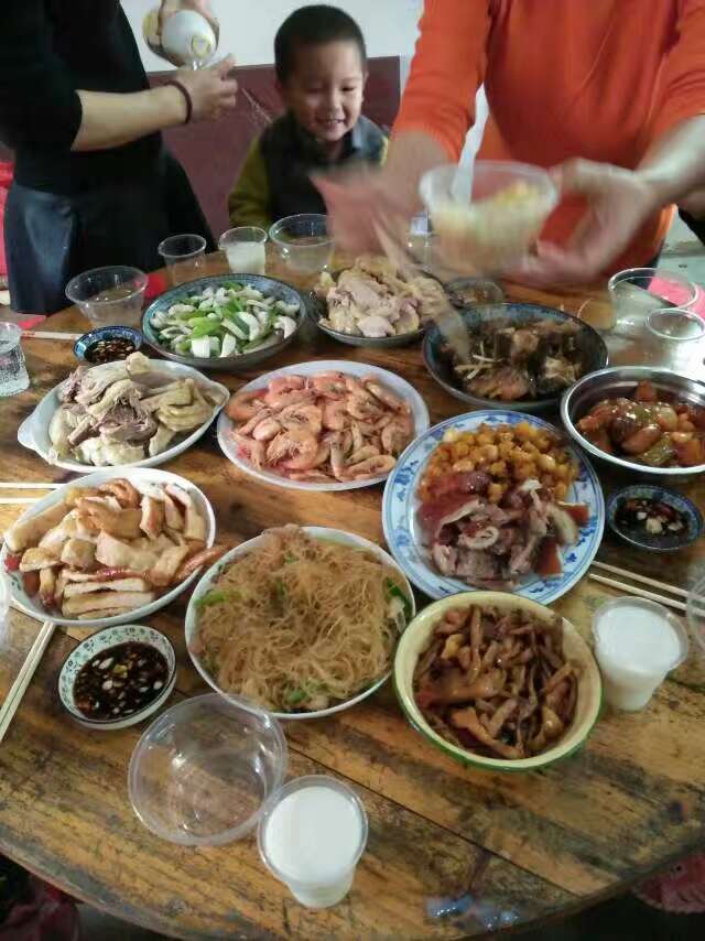 一大家人很热闹哦,丰盛的菜