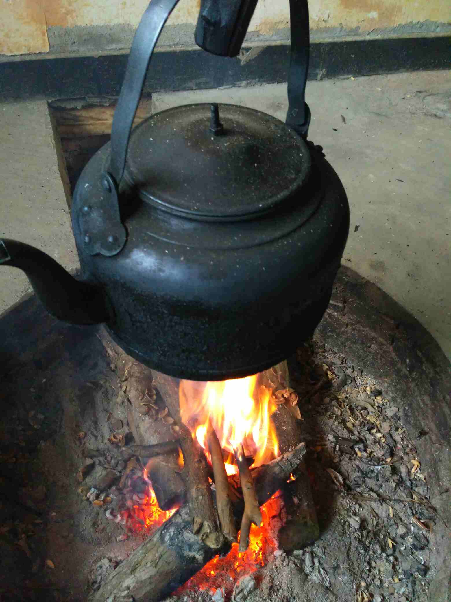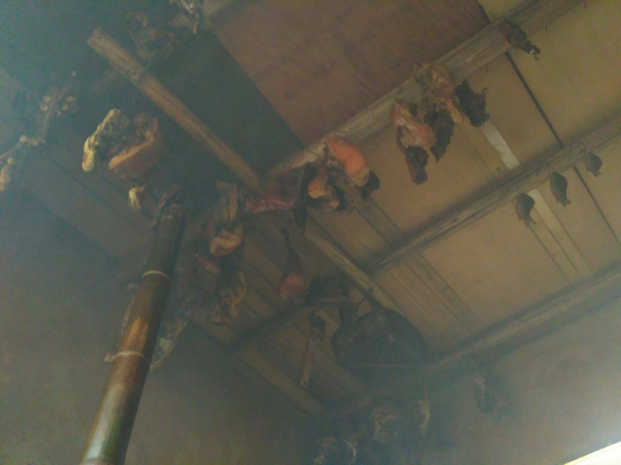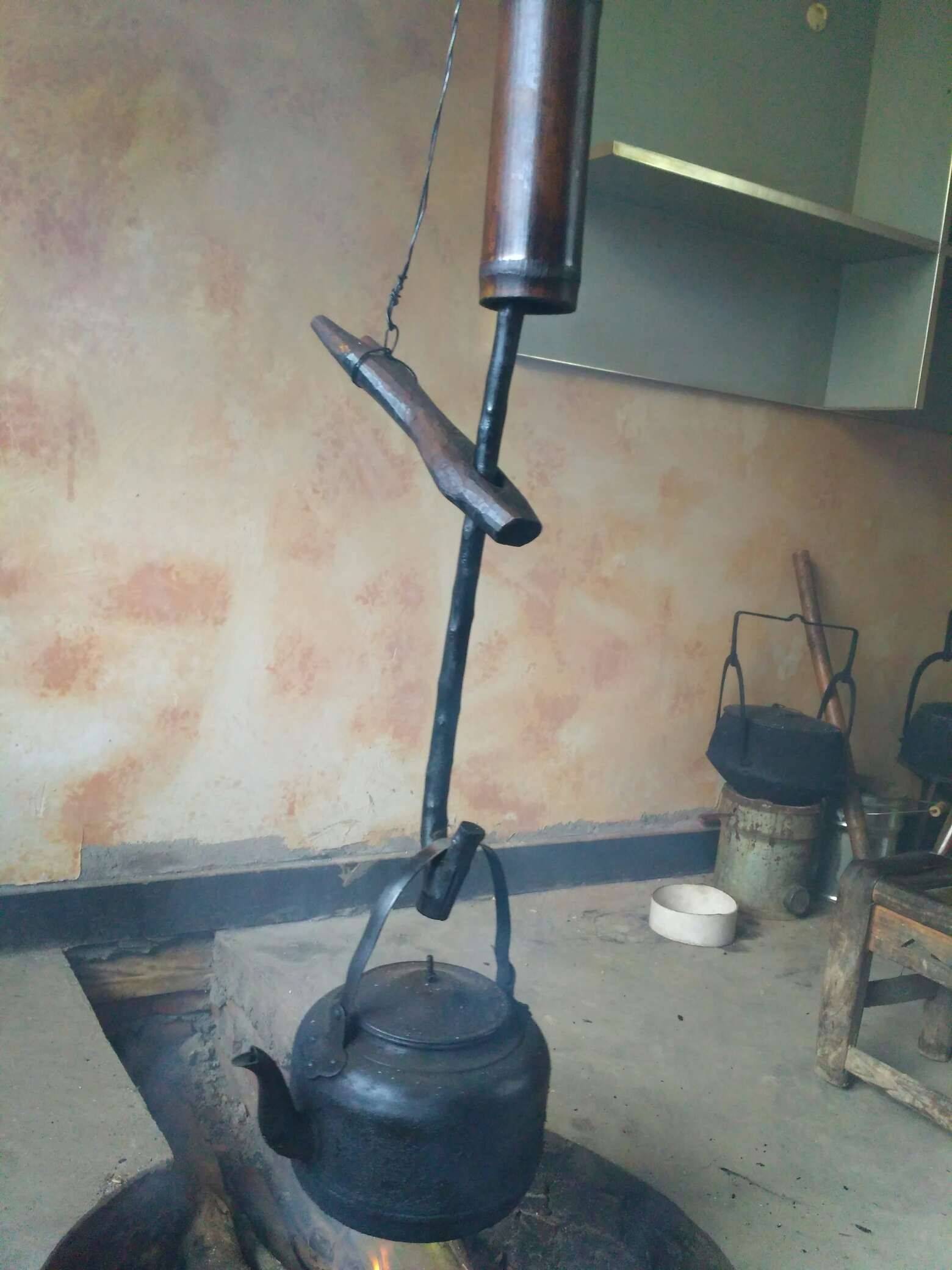 早上给姐妹们发的图片大家都没猜到,现在告诉大家,是我们山里老传统的厨房,那个竹筒做的是我们这里叫梭筒钩能上能下,第二幅图是烧开水的,第四幅图是煮饭的,煮的饭好香好香,现在难得吃到一餐了,第五幅图是炒菜的锅,一家人吃着饭烤着火,锅里炖滚烫菜,吃着舒服极了,火炕上面的熏腊肉特别香