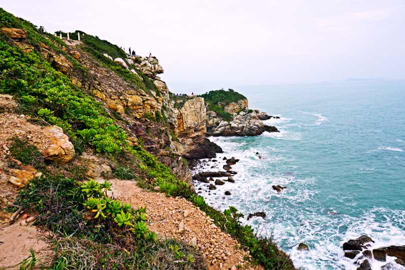 深圳杨梅坑,电影美人鱼的拍摄地,今天我们来了,悬崖峭壁,惊涛拍岸,风景优美。但是总会有人要越红线,悬崖附近有铁链围栏,警示游人注意安全,不要翻越!但是总有一些人毫不畏惧,翻越围栏过去照相,耳边不断传来保安人员的喇叭声,只要有人翻阅禁区,他们就马上吹响喇叭,让我想起前几天老虎吃人事件,人们啊,为什么总是无所畏惧拿自己的生命开玩笑?