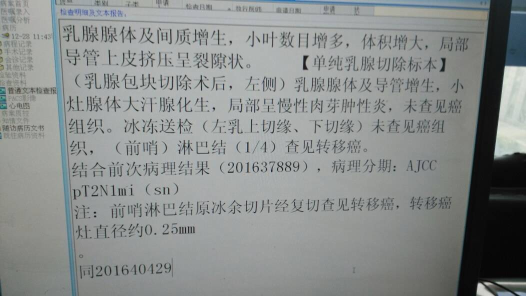 手术医院说放疗可做可做可不做,看到很多年轻人打卵巢去势的针,想着自己也可能应该打的,化疗 换了省肿瘤医院,拖熟人找了个专家,他说我不用放疗 打针,八次化疗完了内分泌十年,姐妹们帮我看看有没和大家相似的病理,大家都是怎么治疗的,前面一张是第二次腋窝清扫的病理,第一张是第一次大手术的免疫组化 谢谢
