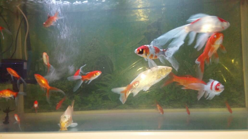 这个鱼缸是1.2米的,比热带鱼的缸大,那个是1米的缸。