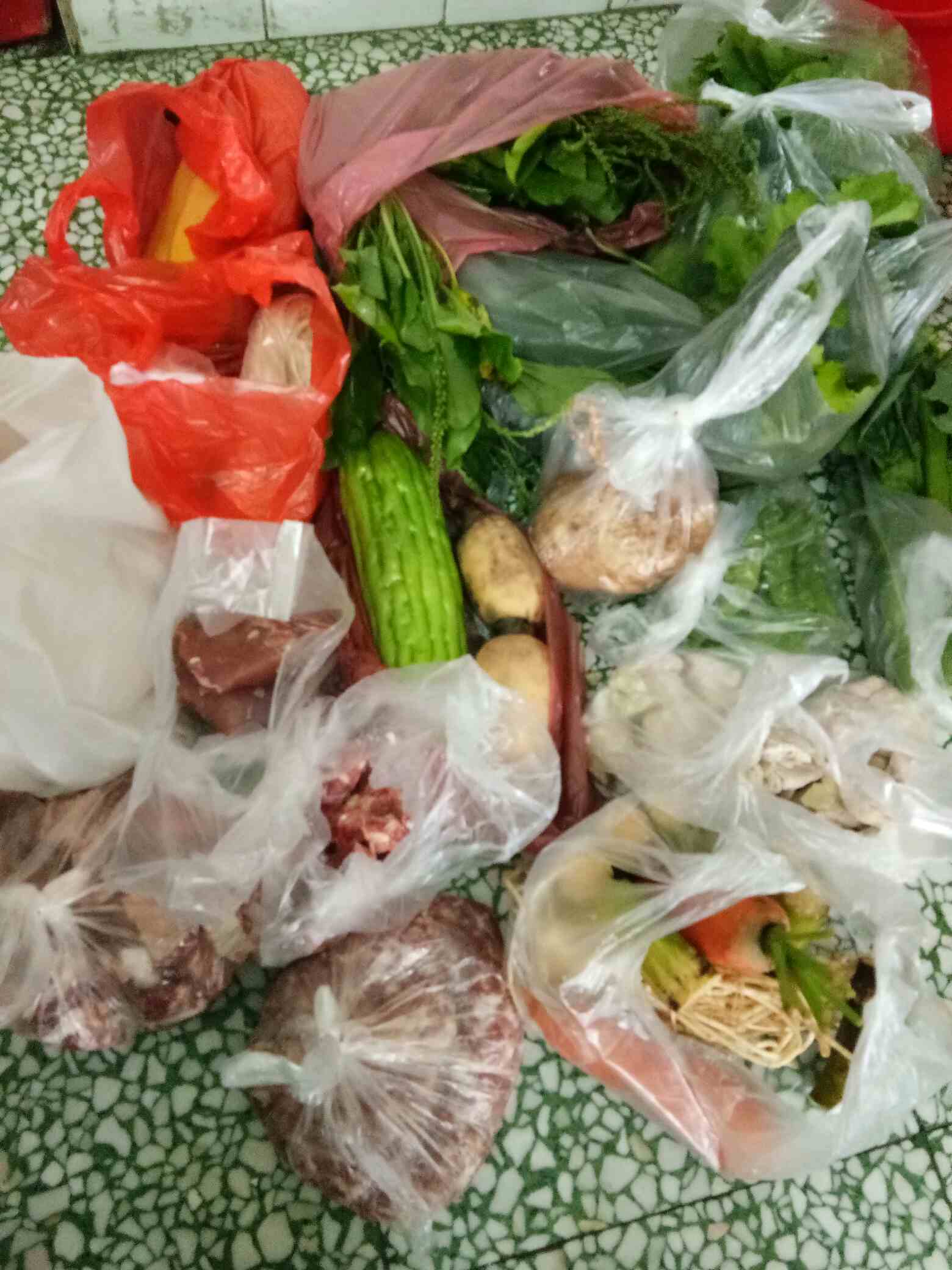 今天一早还没有睡醒,老妈就提这么些菜来敲门了