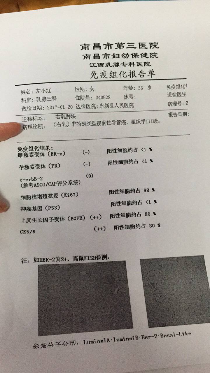 抱抱,妹妹,我也是建议你换权威医院再复查下,免疫组化只是一组数据,不必纠结,人的心态很关键,勇敢坚强的坦然面对吧!三阴规范治疗后一样恢复的!我们一起加油!