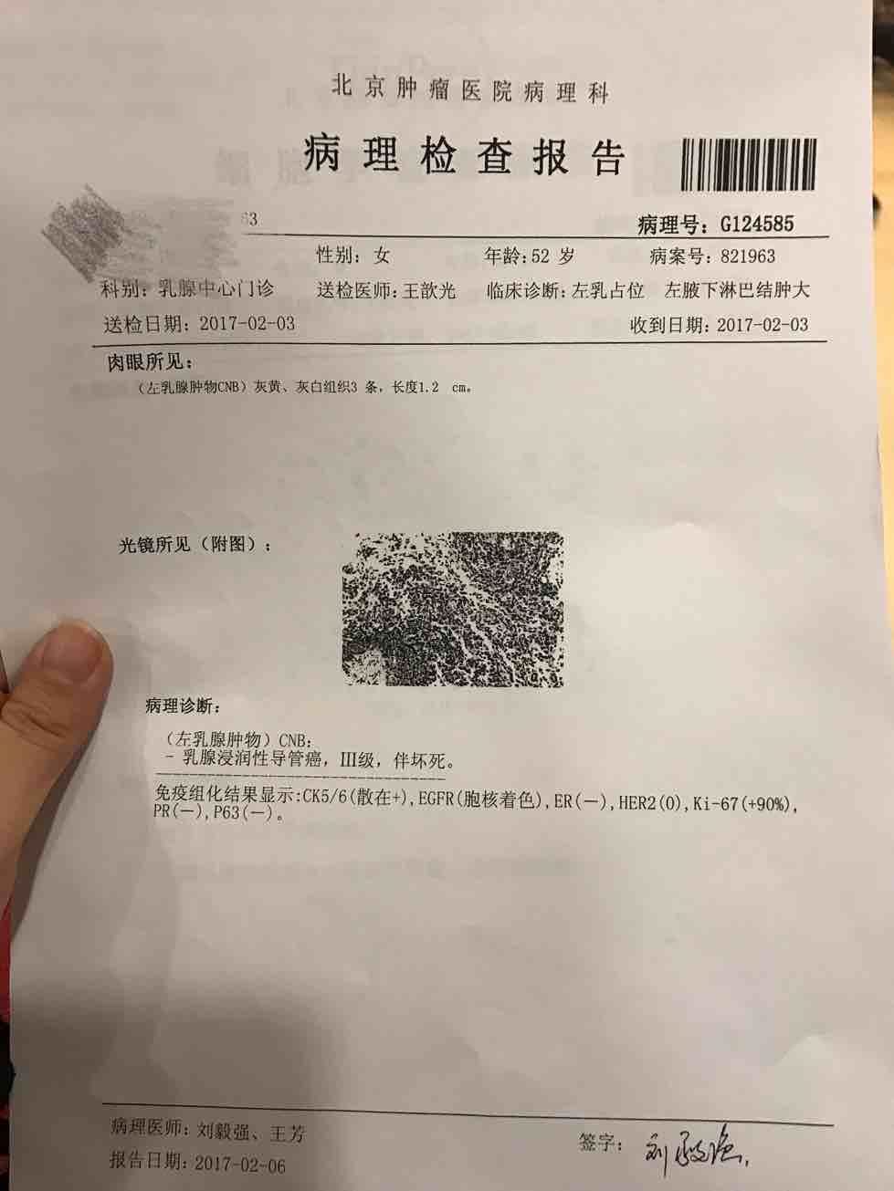 三阴型乳腺癌,Ki67 90%,对化疗药物敏感,化疗效果很好,积极配合医生治疗,开心快乐营养锻炼