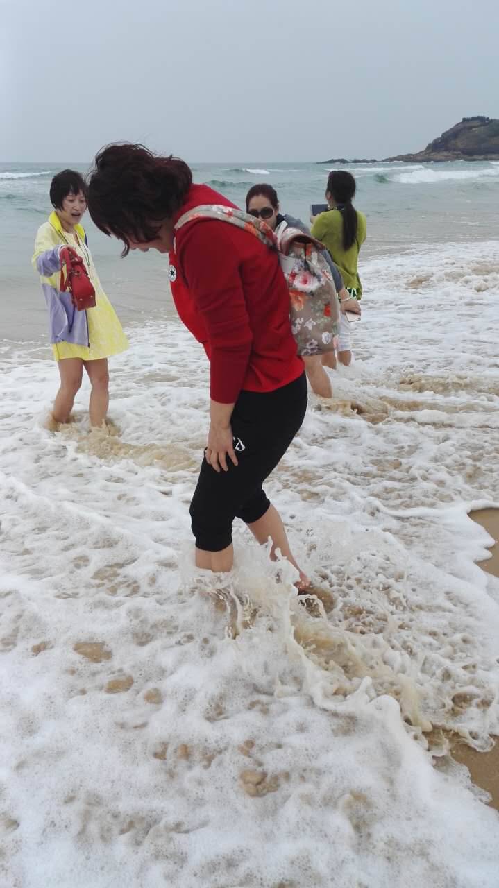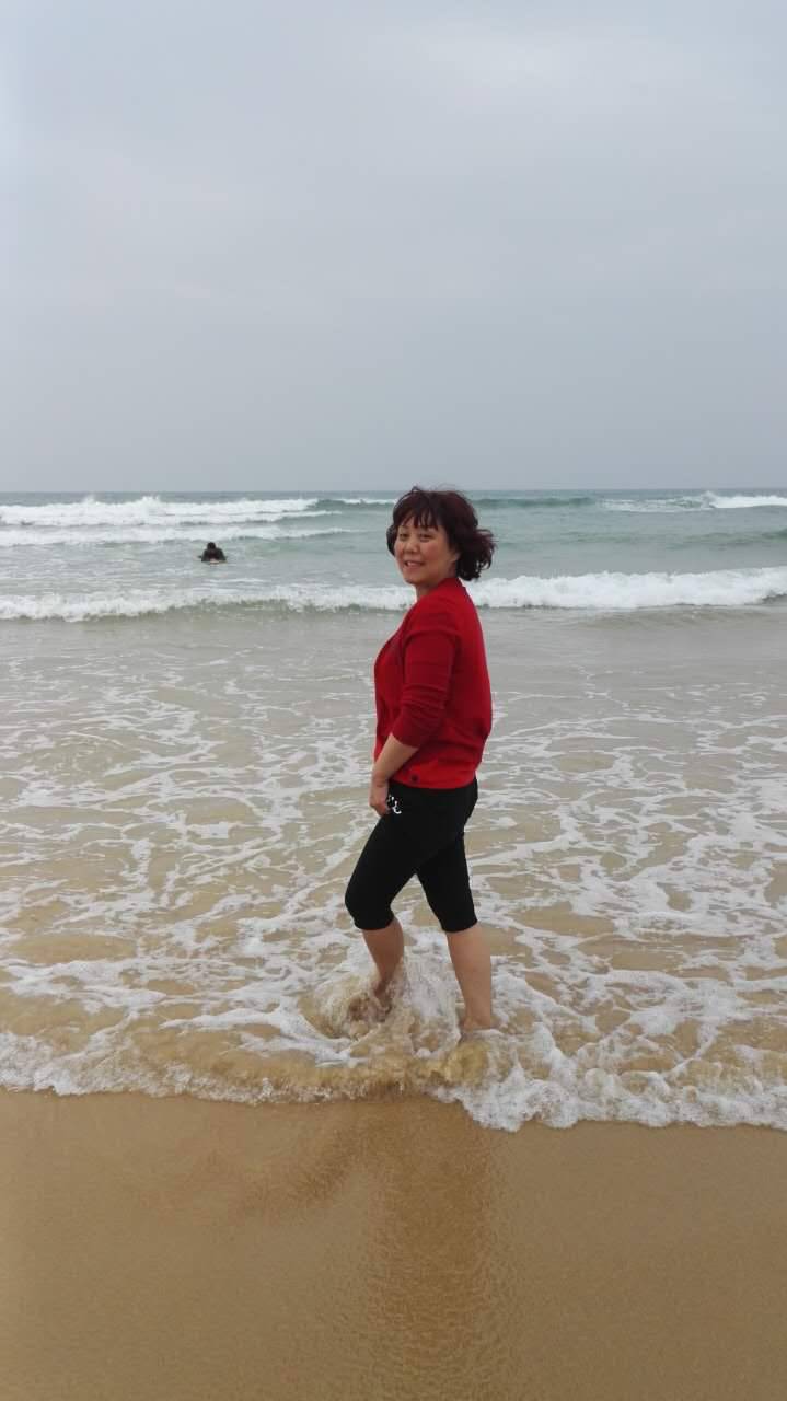 看着海水好像夏天,见你们穿衣服像冬天,天气冷你们都敢下海,