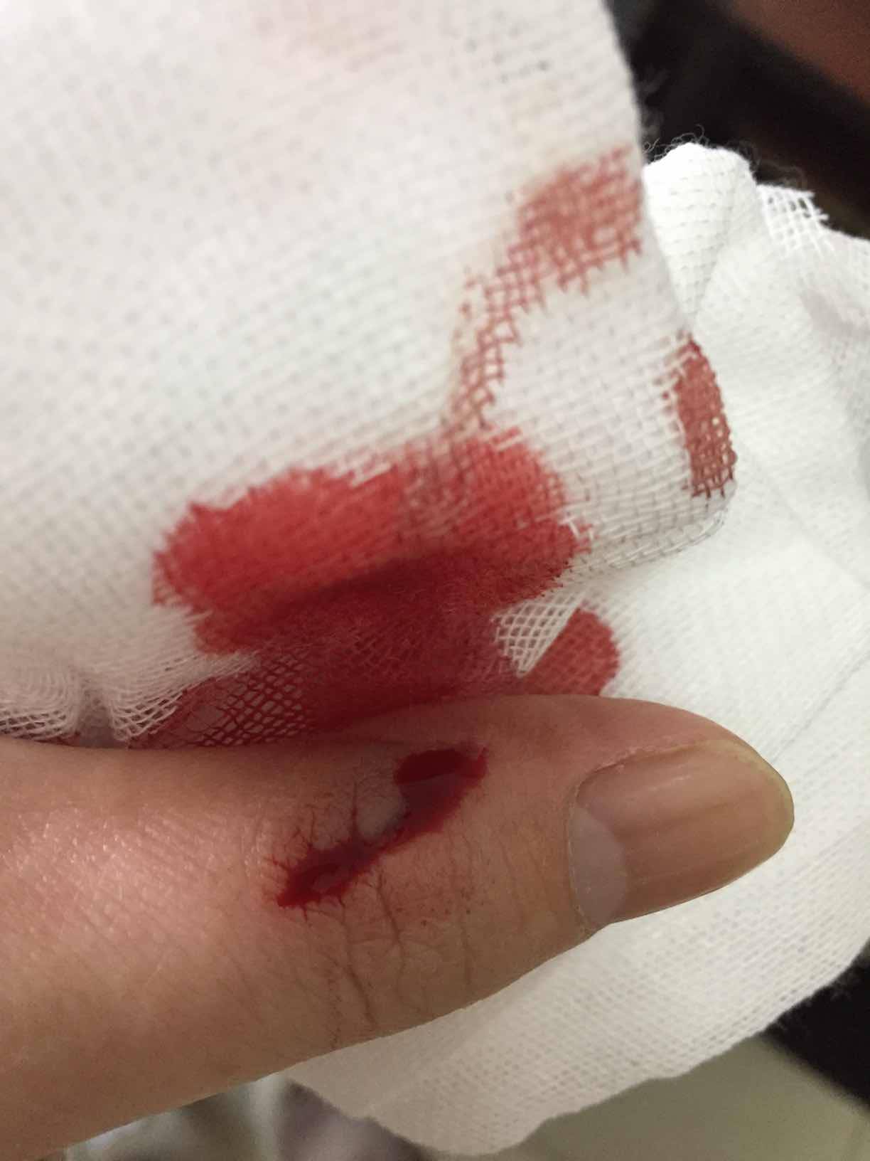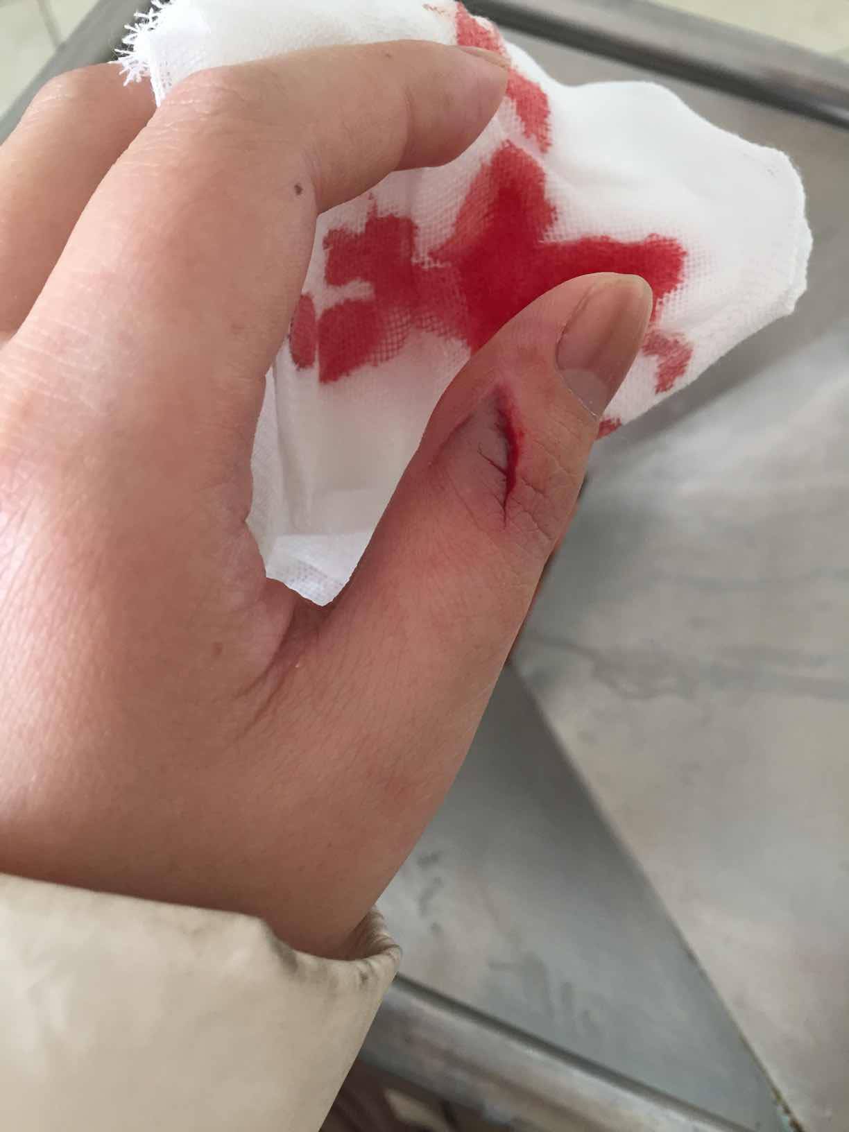 我的天,伤口很深,流了不少血吧!看着真心疼,小师傅以后千万小心点,安全第一,多吃点补补血。