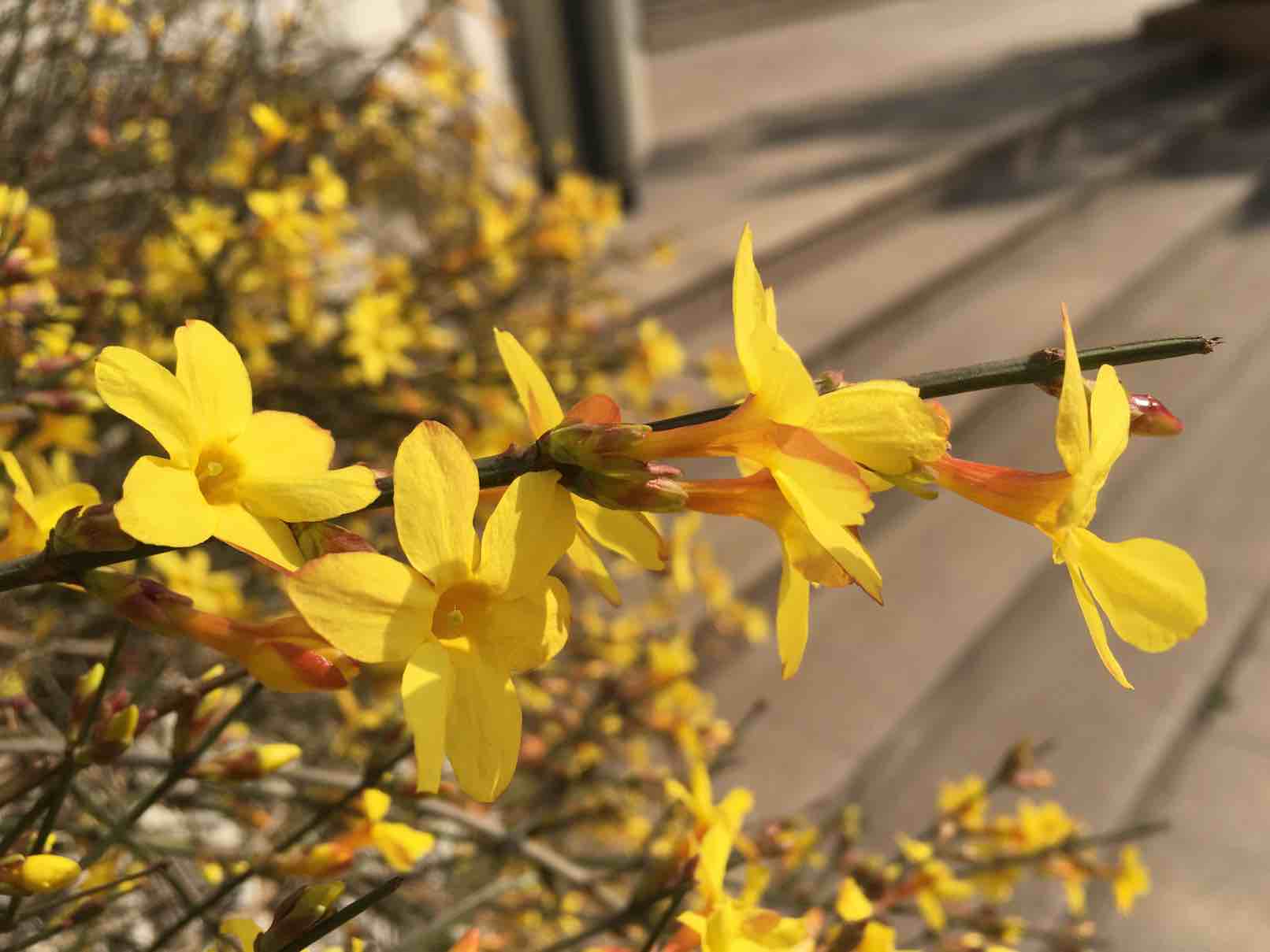 我家阳台上的迎春花也开了,春天真的来了
